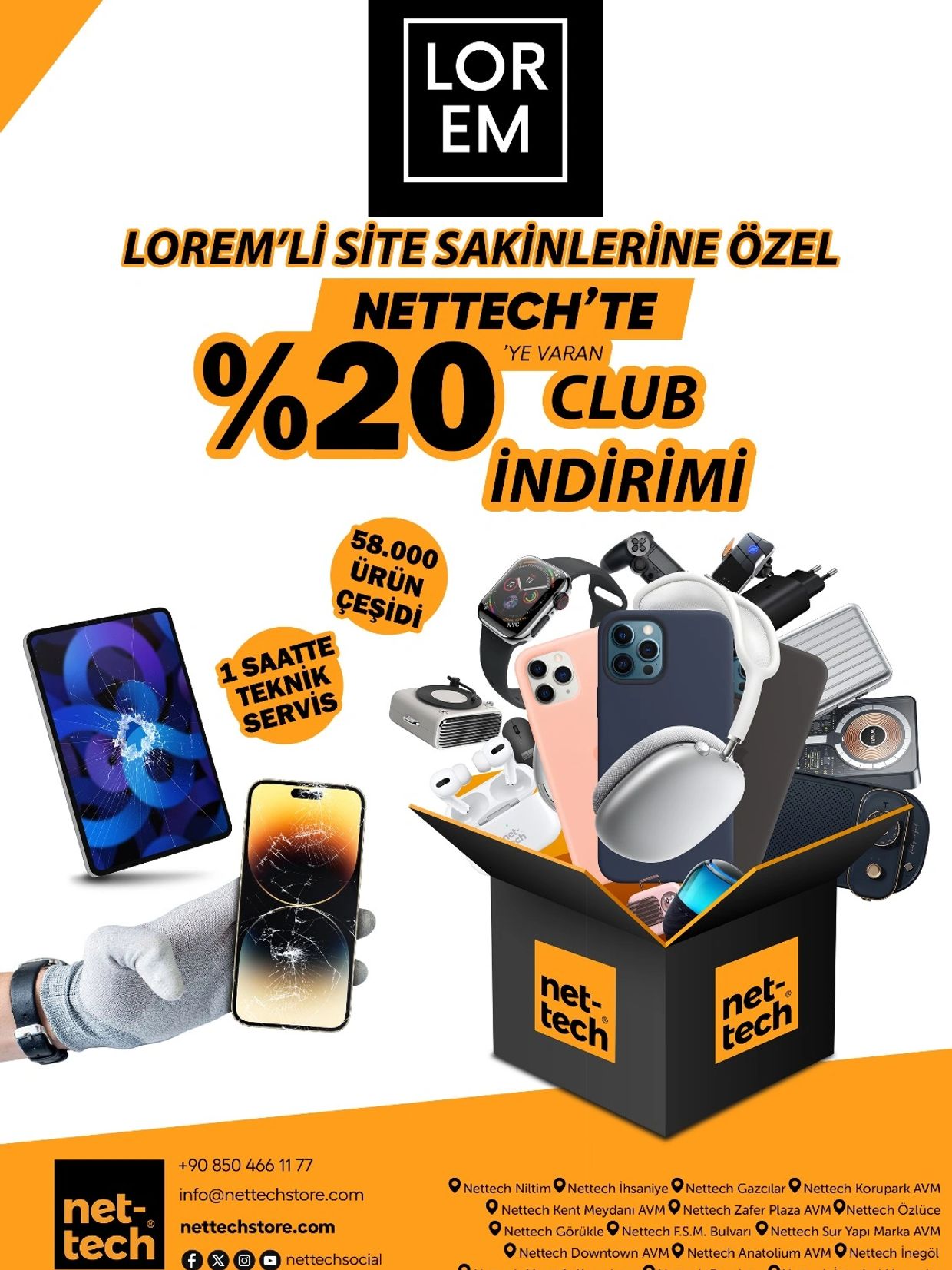 Alışverişiniz esnasında Nettech mağazalarında kasada "Lorem" kodu ile Nettech Club indirimi kazanabilirsiniz.